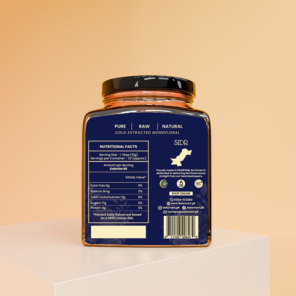 Our Sidr Honey is a premium, 100% pure product sourced from Sidr trees in Pakistan. Each jar is carefully extracted to preserve its natural nutrients, flavor, and medicinal properties. Tested and certified by PCSIR, this honey is trusted for its unmatched quality and authenticity.